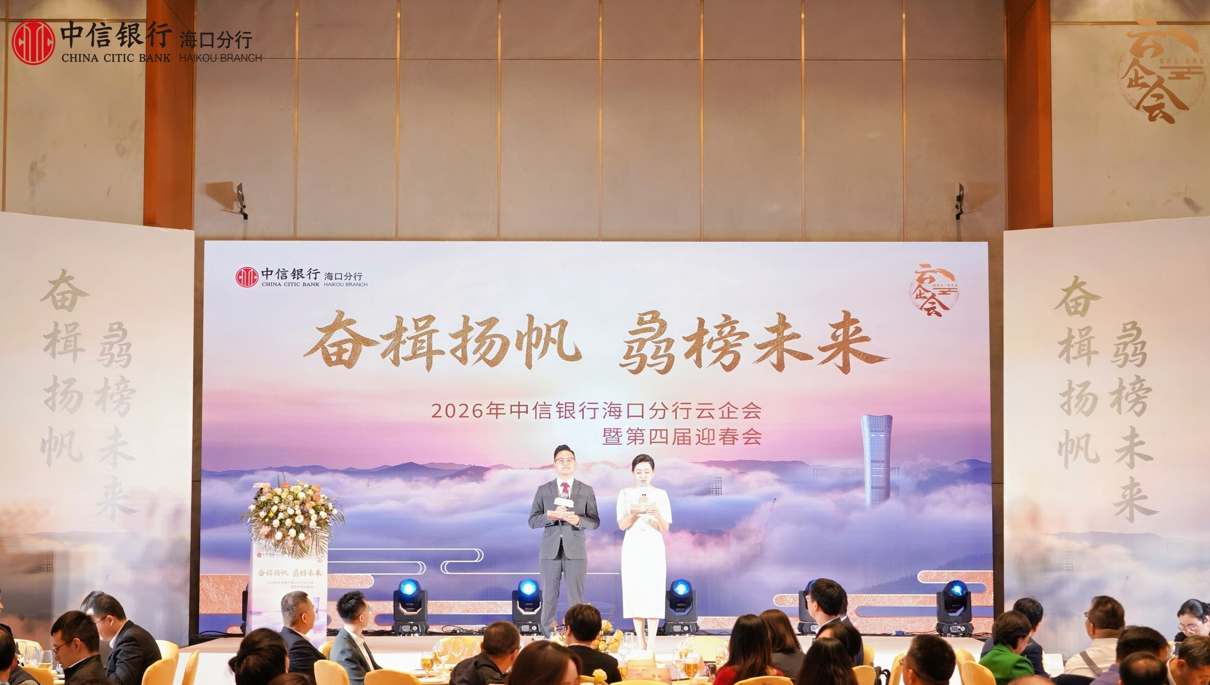 2026年1月9日,中信银行海口分行成功举办“奋楫扬帆 骉榜未来”2026年中信银行海口分行云企会暨第四届迎春会活动。本次活动特邀35组公司客户及60组个人客户,汇聚各界精英、企业家代表与合作伙伴,共话经济趋势,齐谋财富未来。
