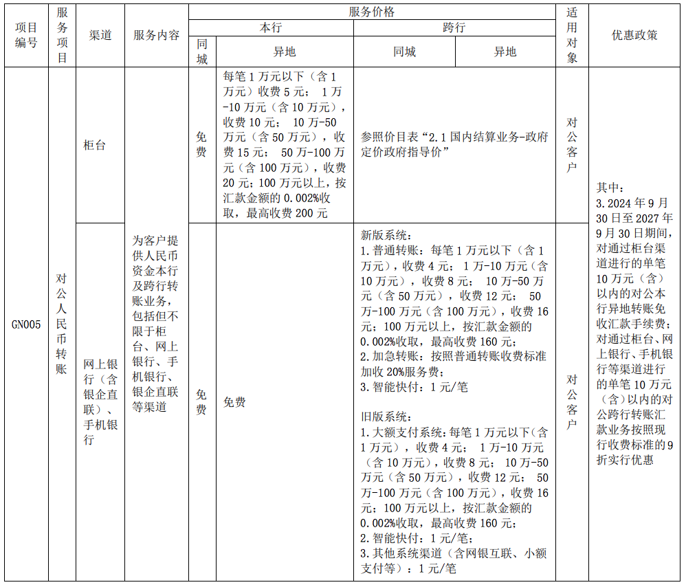 今年在优惠政策即将到期之际,我行持续贯彻落实中国支付清算协会《关于鼓励降低小微企业支付手续费的倡议》,践行金融的政治性和人民性,进一步加大对实体经济的支持力度,所有对公客户延长减费让利优惠政策三年。根据《商业银行服务价格管理办法》(中国银监会 国家发展改革委令2014年第1号)的规定,现将调整后的服务项目及服务价格予以公示如下: