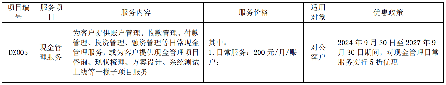 网上银行日常服务、银企直联日常服务、现金管理日常服务的优惠政策延长三年。