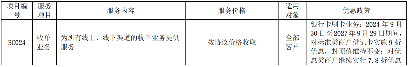 收单业务银行卡刷卡手续费优惠政策延长三年。