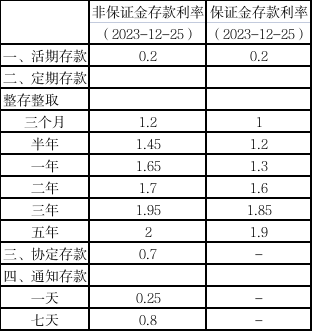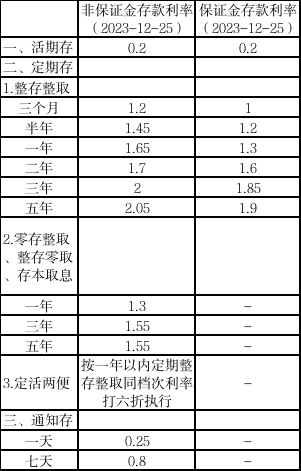 我行自2023年12月25日起调整人民币存款挂牌利率,具体情况如下: